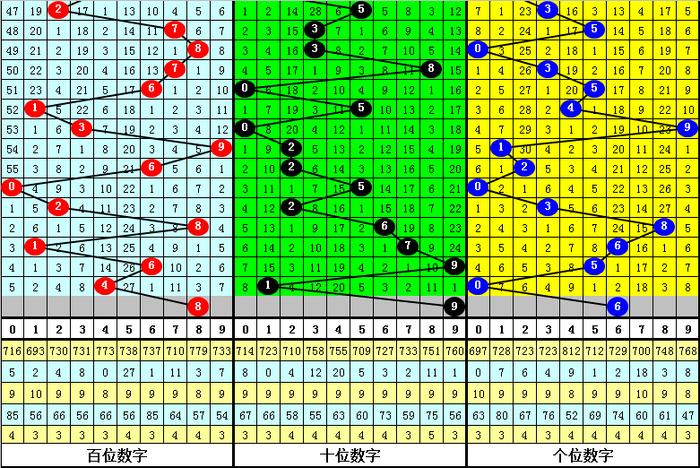第一位1路号码开出9个,当今遗漏0期,其中号码7出现3次,当今遗漏11期;号码1出现2次,当今遗漏2期;号码4出现4次,当今遗漏0期。