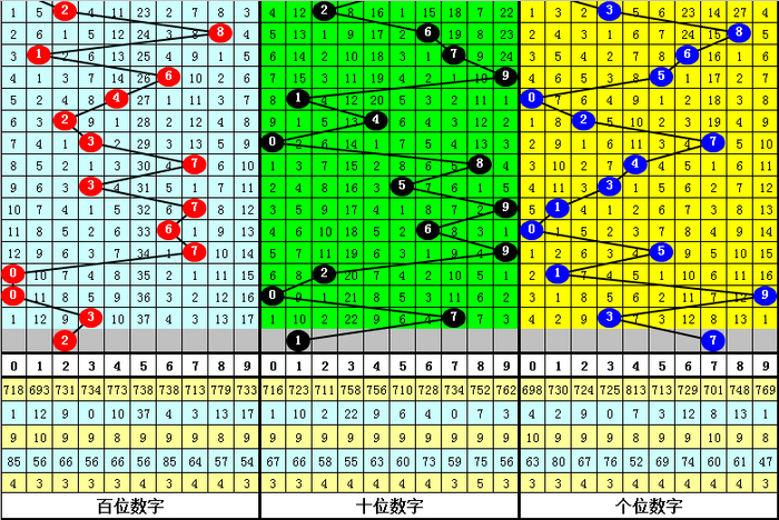 在以上统计中奖,直选010组合之后,下期奖号百位开出号码:013679,未开出号码2458,其中百位号码012路比为6:4:0,大小比为6:4,奇偶比为7:3,本期展望百位出现2路号码,精选一码2。