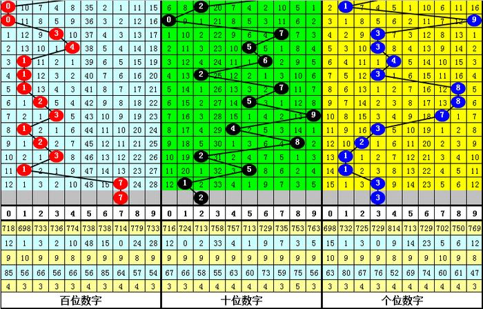 个位:其下期奖号1路和2路在该位大热,0路近7次一起轮空,本期该位防卫0路解冻,柔柔号码3。