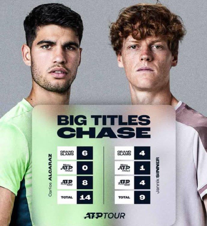 在好意思网二度登顶之后,阿尔卡拉斯在紧要赛事冠军数上也以14-9延续扩大对辛纳的着手上风。这其中,大满贯冠军是6-4、ATP1000内行赛是8-4。阿卡唯独还莫得破零的是ATP 年终总决赛,当今他以0-1过期于辛纳。