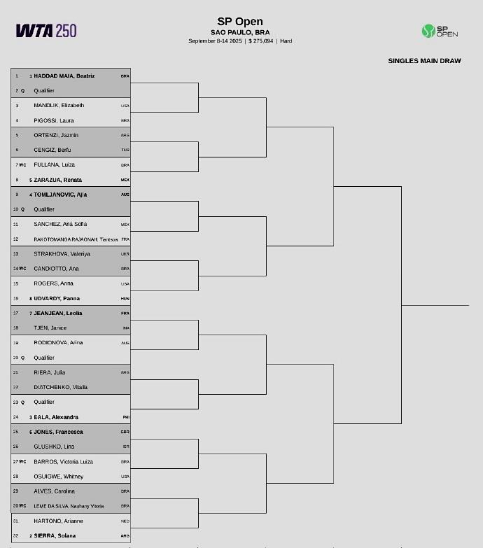咱们再来眷注本周的赛事。北京期间昨晚,WTA250巴西圣保罗站公布了正赛签表。原土一姐玛雅当作头号种子领衔出战。谢拉、伊埃拉、汤姆贾诺维奇等球员也将参赛。