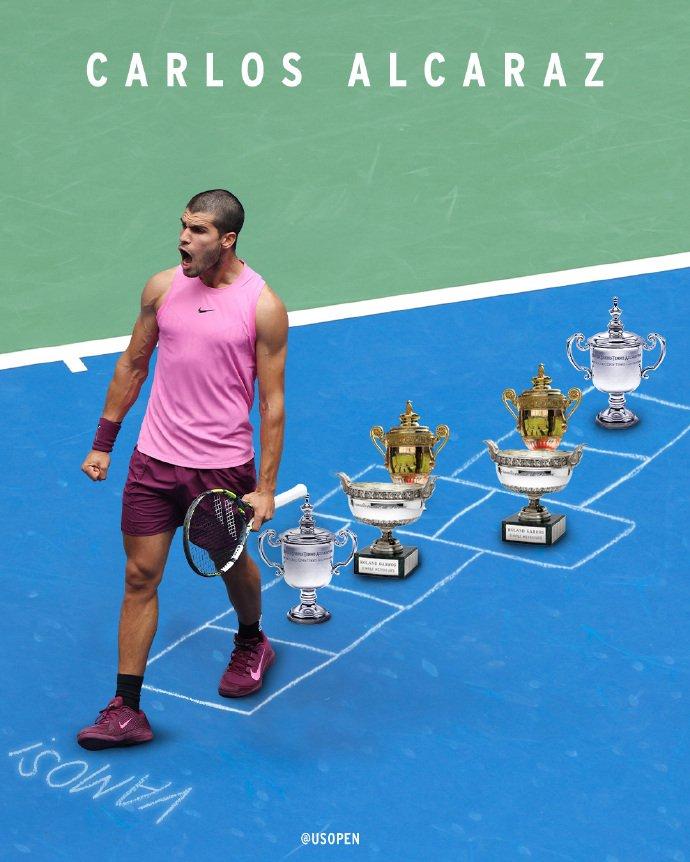 这是阿尔卡拉斯处事生存得到的第六座大满贯冠军奖杯,年青的阿卡也因此成为1978年好意思网转为硬地之后,第一位23岁之前在三种不同场面大满贯齐至少夺冠两次的球员。22岁4个月的阿尔卡拉斯还跳跃了我方的同族前辈纳达尔,成为继博格之后,拿到六个大满贯冠军第二年青的须眉球员。不仅如斯,西班牙小伙子的六冠也追平了瑞典的埃德伯格和德国的贝克尔,迈进了名宿的门槛。