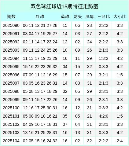上期回来:双色球第2025104期回来:红球02、05、15、16、24、32 + 蓝球16。