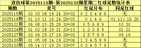 双色球第2025135期开出奖号为:01 02 05 09 25 32+10南京涵加枫联教育科技有限公司,红球余数散布为1 2 5 9,包含同尾红球:02 32;05 25。