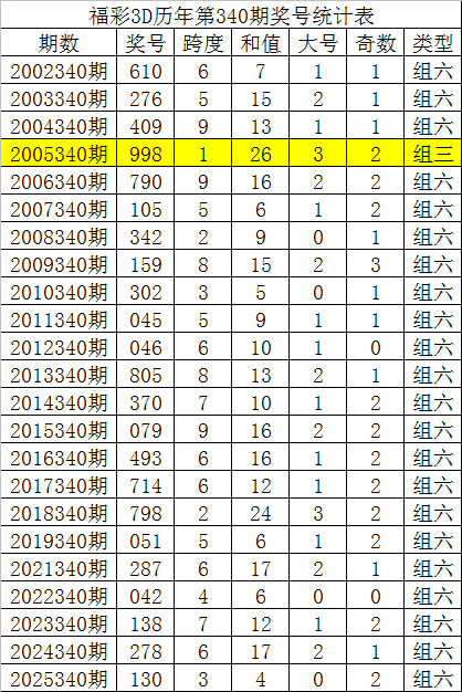 从以上统计不错看出,积年3D第341期开出了10次组三号码,开出了12次组六号码。组六号码推崇相对较冷,本期预测开出组六号码。