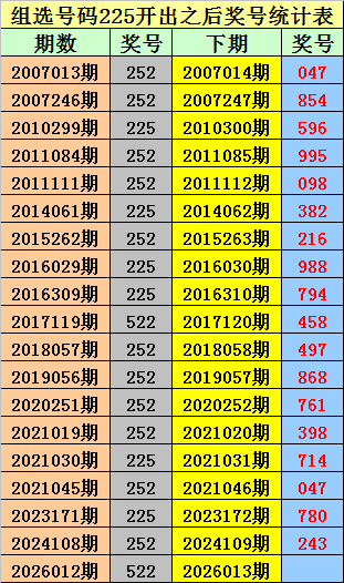 罗列三组选225出现之后下期诀别开出:047、854、596、995、098、382、216、988、794、458、497、868、761、398、714、047、780、243。